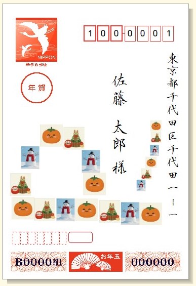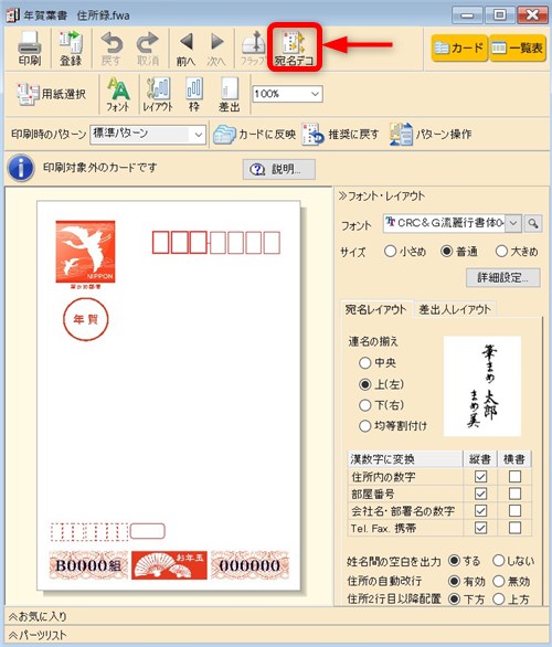 用意されている宛名デコテンプレートから選んで適用させるとかんたんにできてしまいます。