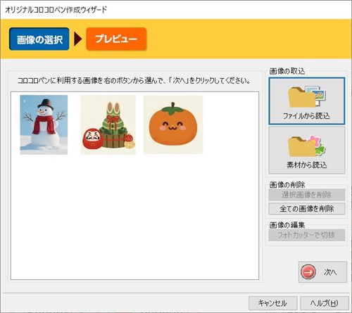 写真やイラスト画像などを用意して、それをコロコロペン化できるみたいです。