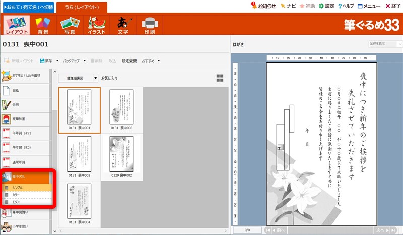 そうしたところ、喪中はがきテンプレート(レイアウト)のがちょっとしか見あたらず